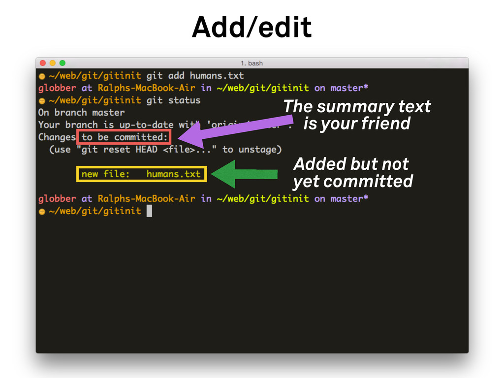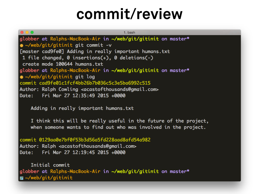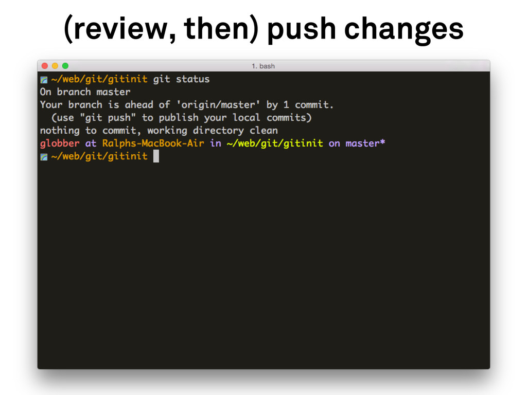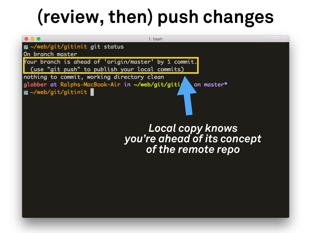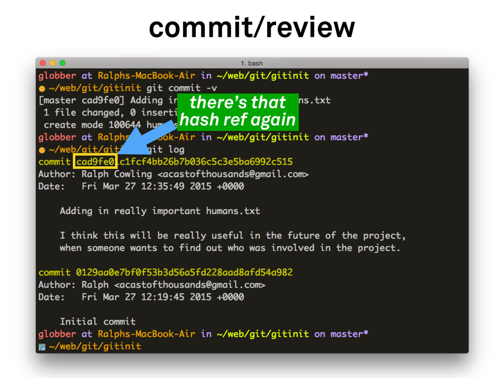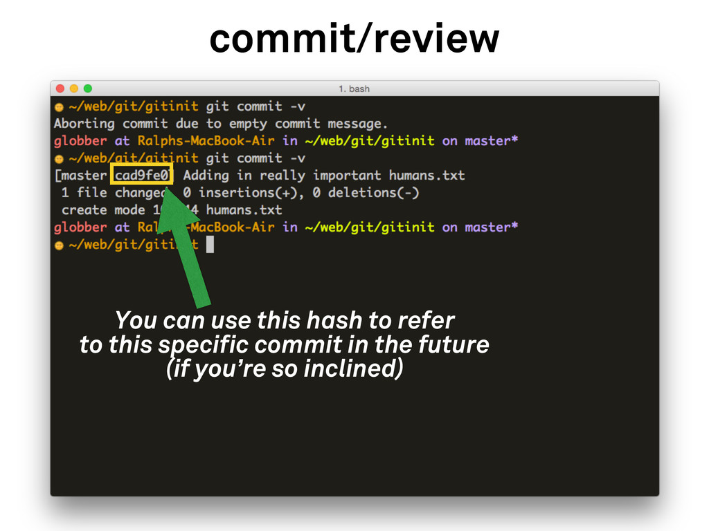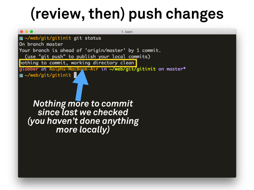 refer to this specific commit in the future (if you’re so inclined) Nothing more to commit since last we checked (you haven’t done anything more locally)