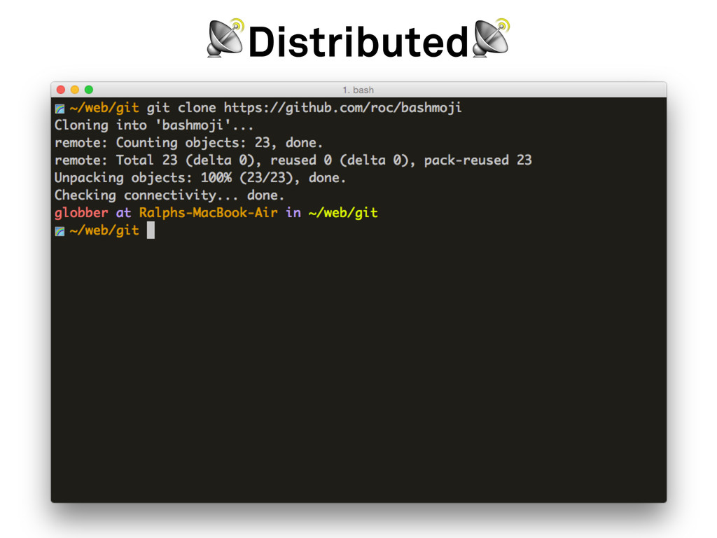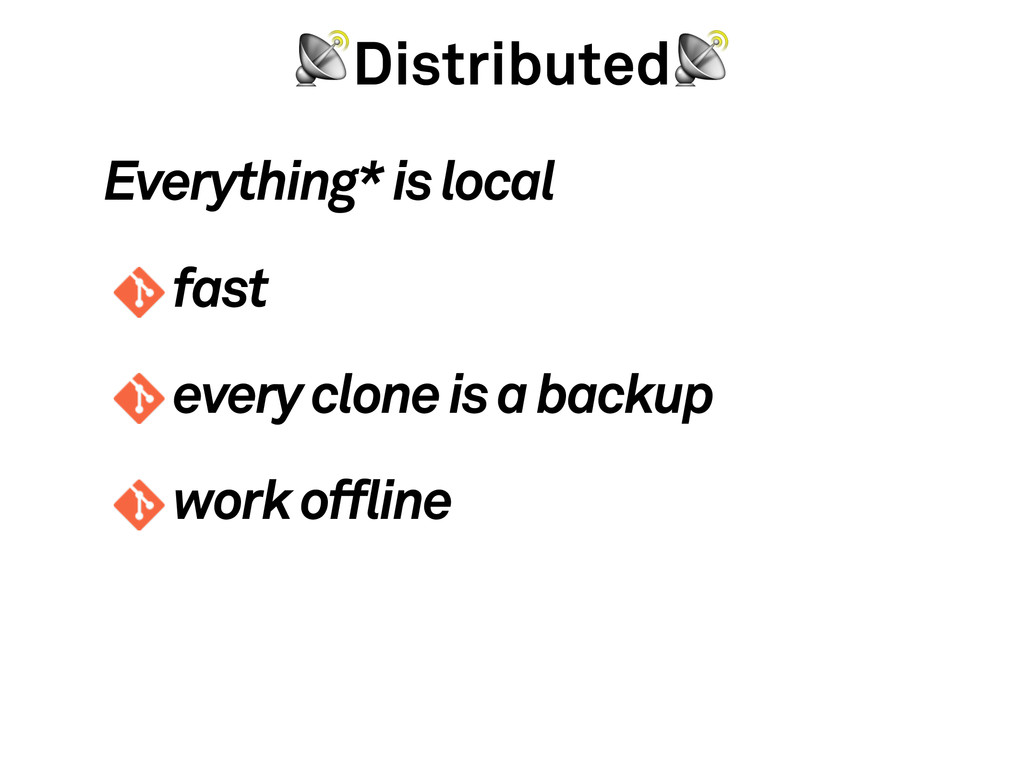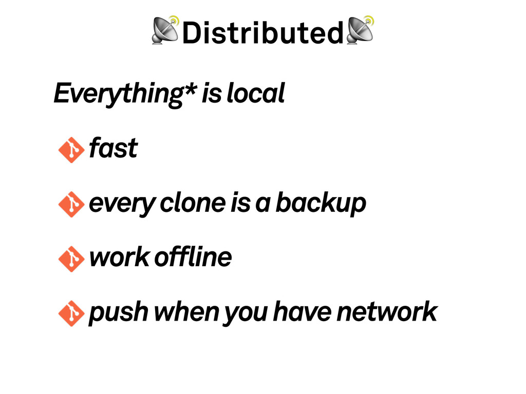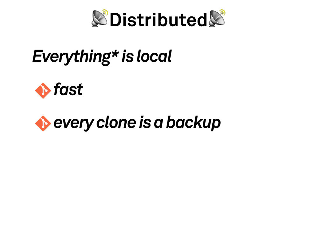 the working copy you get by checking out code from an SVN repository. Unlike SVN, Git makes no distinction between the working copy and the central repository—they are all full- fledged Git repositories.” https://www.atlassian.com/git/tutorials/setting-up-a-repository/git-clone Everything* is local