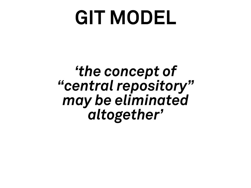 the working copy you get by checking out code from an SVN repository. Unlike SVN, Git makes no distinction between the working copy and the central repository—they are all full- fledged Git repositories.” Everything* is local