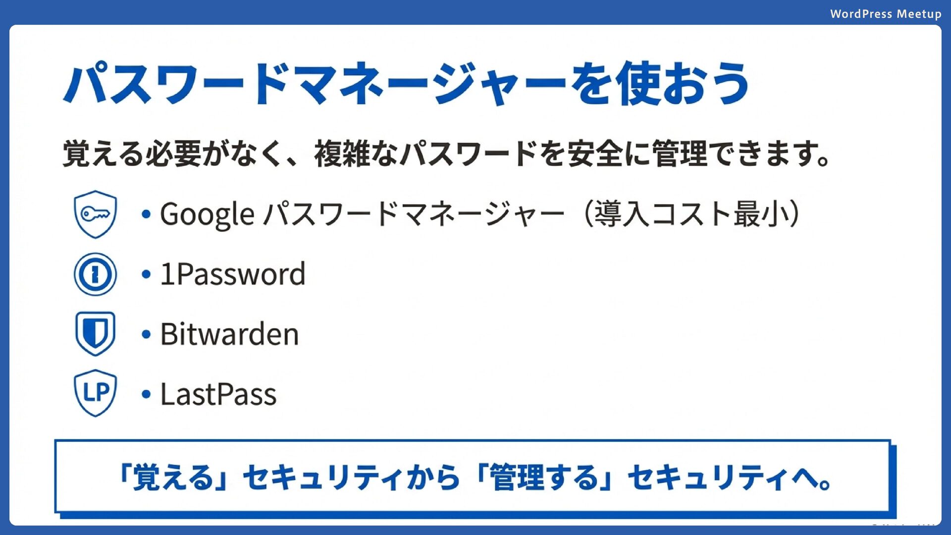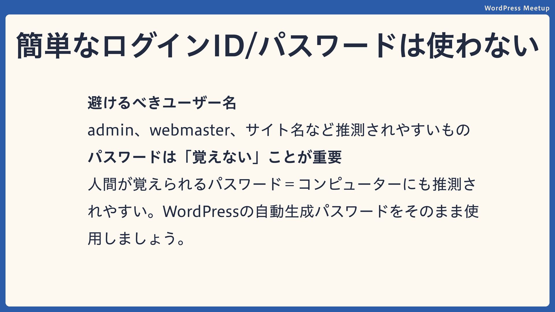 WordPress Meetup 簡単なログインID/パスワードは 使わない