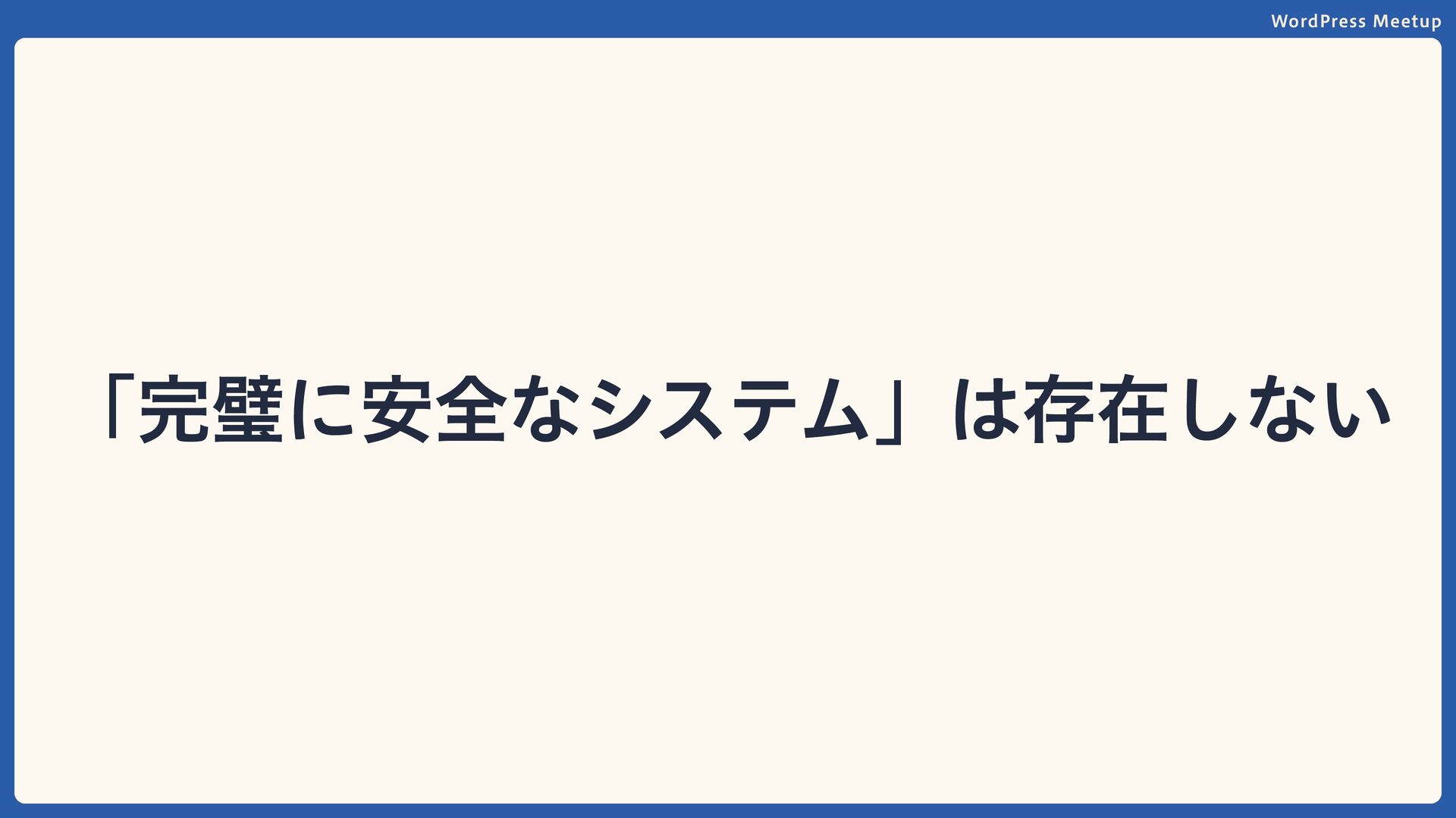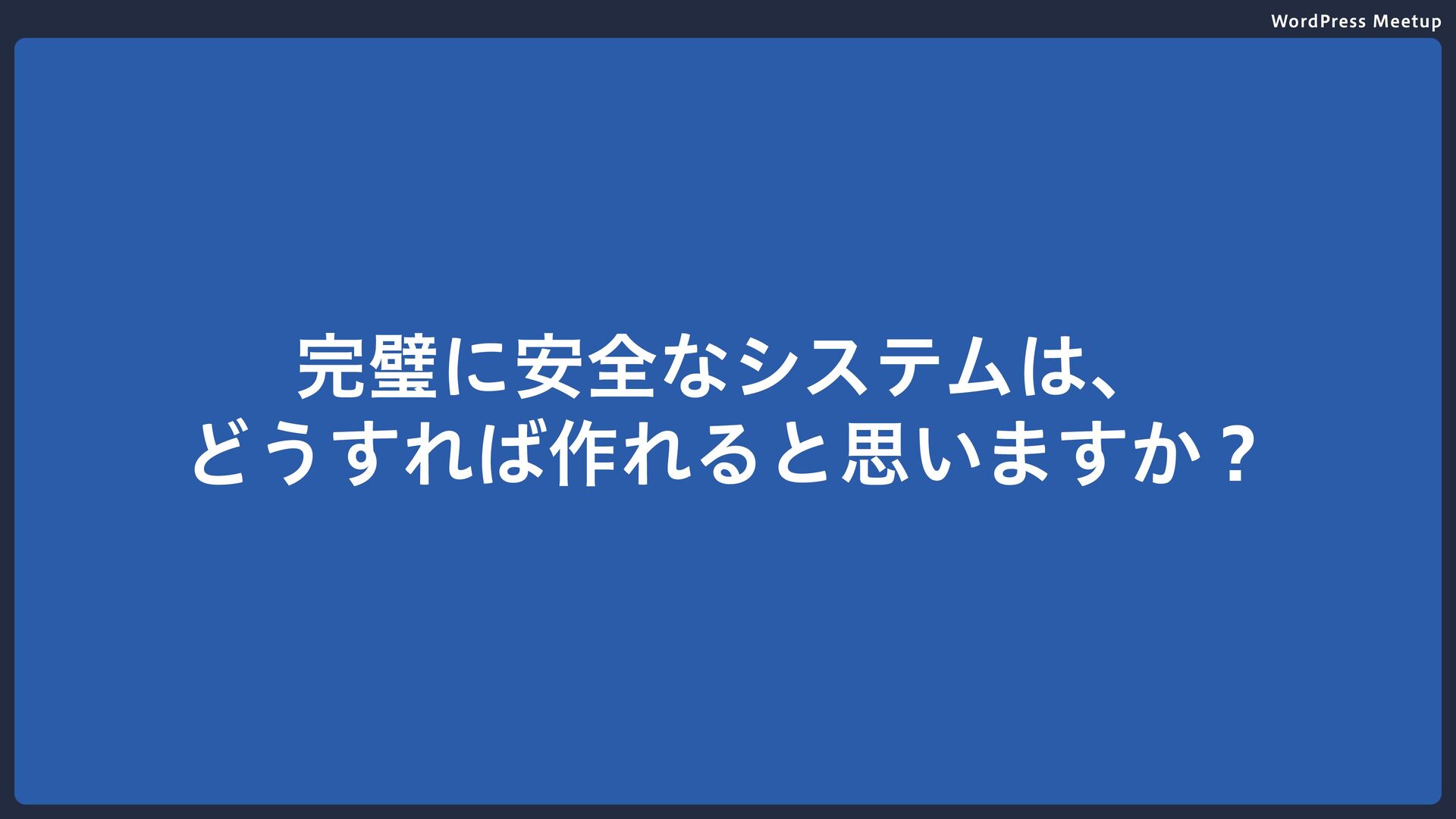 WordPress Meetup 完璧に安全なシステムは、 どうすれば作れると思いますか?
