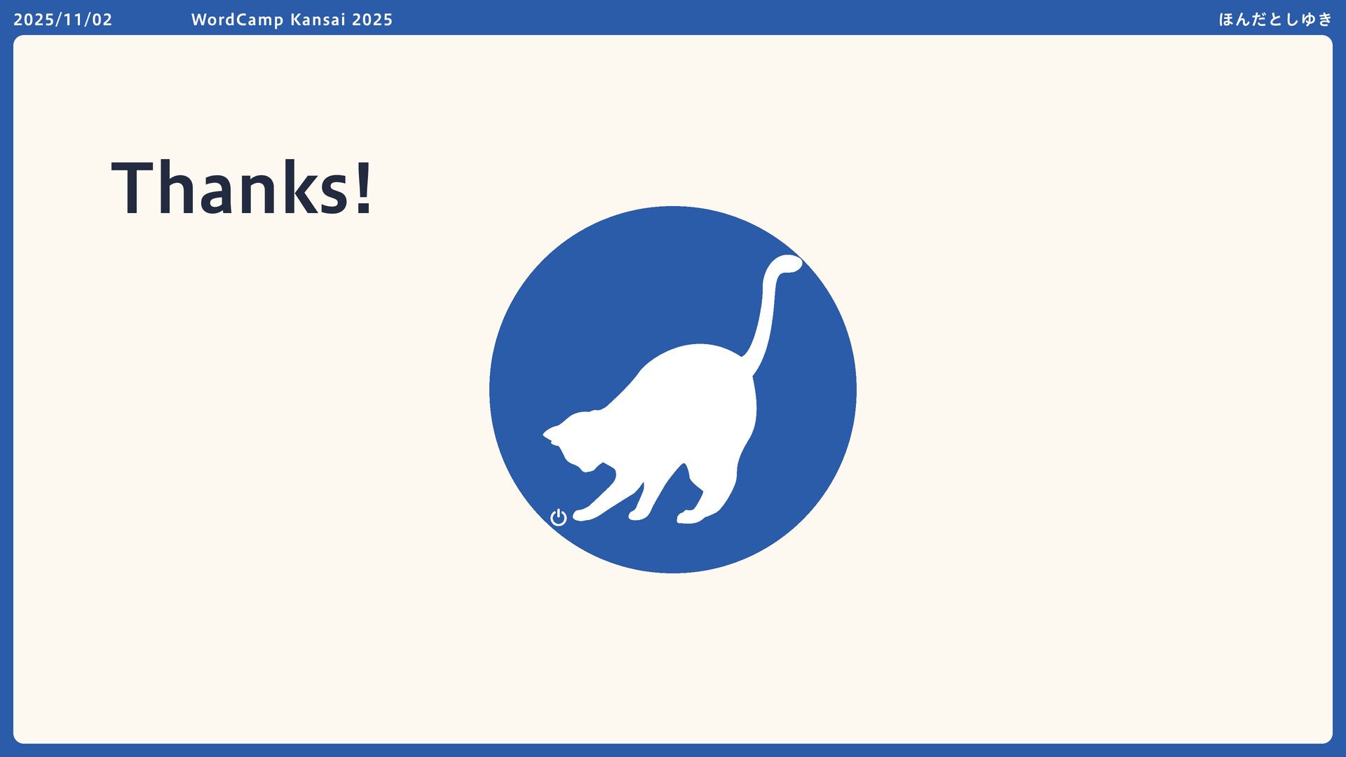 Thanks! 2025/11/02 WordCamp Kansai 2025 ほんだとしゆき