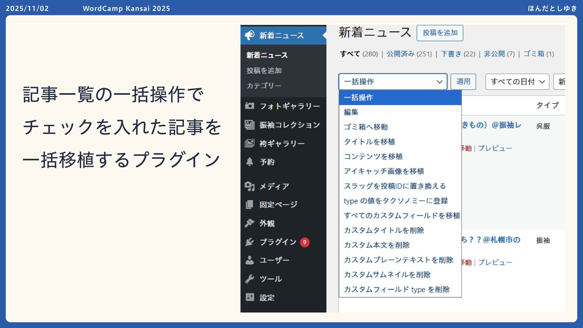 ACFのメタデータに登録されているタイトル・コンテンツ等を移植するプラグイン