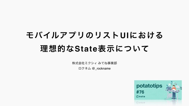 ϞόΠϧΞϓϦͷϦετUIʹ͓͚Δ ཧతͳStateදࣔʹ͍ͭͯ גࣜձࣾϛΫγΟ ΈͯͶࣄۀ෦ ϩΫωϜ @_rockname
