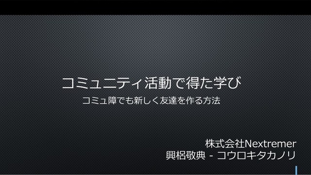 コミュニケーション能力強者が多いコミュニティリーダーの方々、僕のような奴を見かけた時にアドバイスしてやっていただければ幸いです。