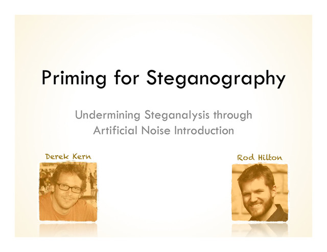 Presentation about an experiment done by myself and Derek Kern to determine if filters can be used to preprocess images prior to steganography embedding to reduce efficacy of steganalysis.
