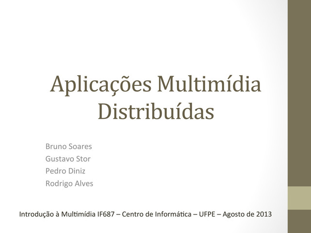 são sistemas cons<tuídos por bases mul<mídia, servidores de informação e clientes, visam a distribuição de conteúdo mul<mídia através das redes.” Veeravalii Aplicações Mul<mídia Distribuídas 9