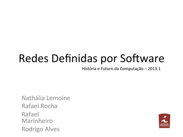 novo paradigma de controle e inovação em redes de pacotes” • N. McKeown, T. Anderson, H. Balakrishnan, G. Parulkar, L. Peterson, J. Rexford, S. Shenker, and J. Turner, “Openflow: enabling innovaKon in campus networks,” SIGCOMM Comput. Commun. Rev., vol. 38, no. 2, pp. 69–74, Mar. 2008. [Online]. Available: hyp://doi.acm.org/10.1145/1355734.1355746 • K. Greene, “Tr10: So/ware-‐defined networking,” MIT Technology Review, Apr. 2009. [Online]. Avail-‐ • able: hyp://www2.technologyreview.com/arKcle/412194/tr10-‐so/ware-‐ defined-‐networking/ • M. Casado, M. J. Freedman, J. Pezt, J. Luo, N. McKeown, and S. Shenker, “Ethane: taking control of the enterprise,” SIGCOMM Comput. Commun. Rev., vol. 37, no. 4, pp. 1–12, Aug. 2007. [Online]. Available: hyp://doi.acm.org/ 10.1145/1282427.1282382