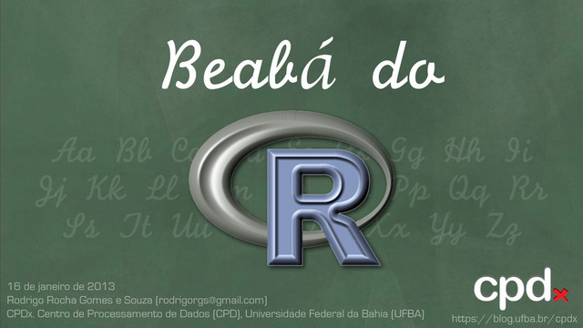 R é uma linguagem gratuita, poderosa e rápida para análise e visualização de dados. Tire suas próprias conclusões! Mini-palestra apresentada no CPDx (Ciclo de Palestras para Desenvolvedores) na UFBA em 16/01/2013