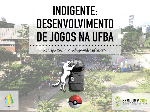 O Interactive Digital Entertainment (Indigente) é um grupo de pesquisa e desenvolvimento de jogos digitais fundado em 2004 por alunos do curso de Ciência da Computação da UFBA. Esta palestra mostra a trajetória do grupo e apresenta tecnologias, desafios e oportunidades para estudantes de computação interessados em desenvolver jogos e realizar pesquisa na área.