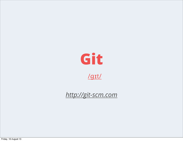 system designed to handle everything from small to very large projects with speed and efficiency Initially designed and developed by Linus Torvalds for Linux Kernel development. Initial released: 7 April 2005 License: GNU General Public License v2 Friday, 16 August 13