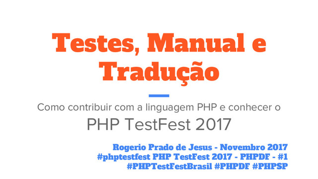 problema ◦ Casos de apenas só API funções novas • Principal caminho: ◦ Editor online ◦ https://edit.php.net/ • Recursos: ◦ http://doc.php.net/tutorial/ ◦ https://www.sammyk.me/how-to-co ntribute-to-php-documentation