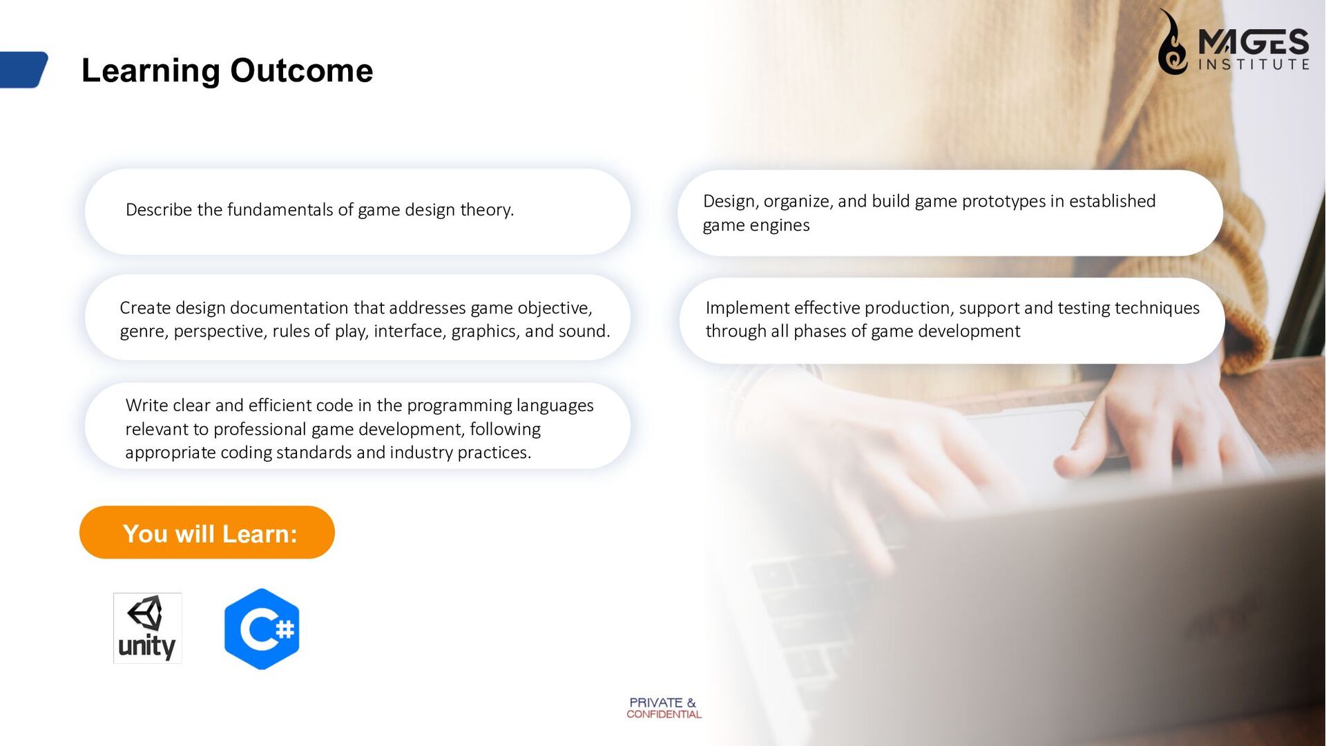 Develop and enhance your ability to create programming code for 2D/3D Games, Mobile Games, AI Opponents and Real-Time Virtual Environments using software such as Unity Game Engine, C#, and more. Learn from the Industry professionals the art of game and establish a successful career as a Game Developer and Artist. The Games Industry is largely passion driven, and at MAGES, you can find out why.