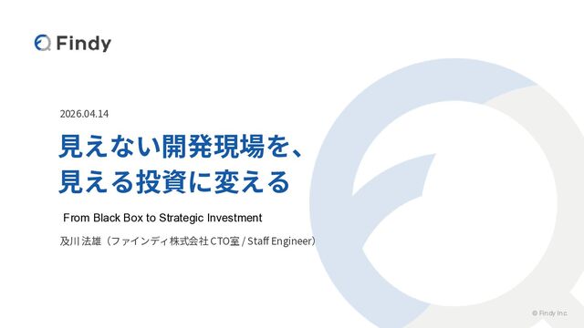 © Findy Inc. 2026.04.14 見えない開発現場を、 見える投資に変える 及川 法雄(ファインディ株式会社 CTO室 /