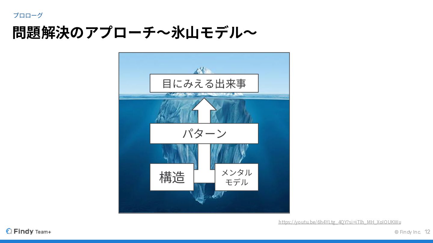 問題解決のアプローチ〜氷山モデル〜 https://youtu.be/6h4YLtg_4QY?si=iTlh_MH_XoIOUKWu