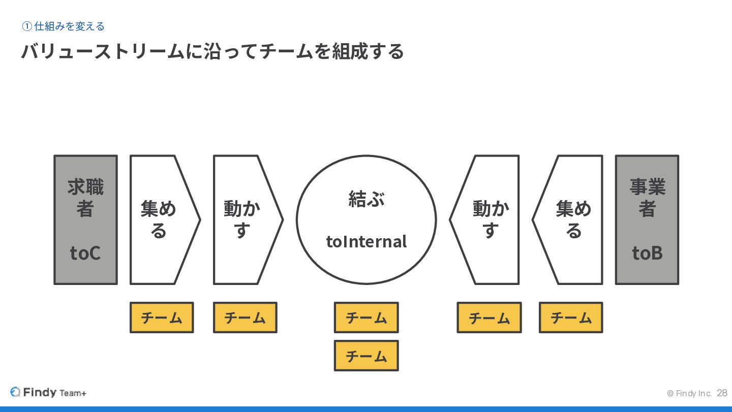 © Findy Inc. バリューストリームに沿ってチームを組成する ① 仕組みを変える 28 求職 者 toC