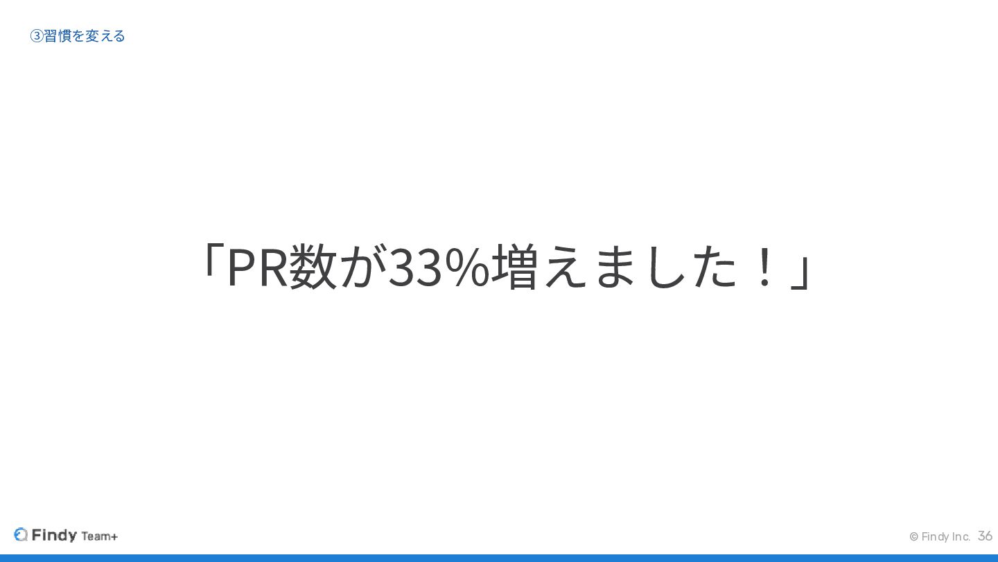 © Findy Inc. ③習慣を変える 36 「PR数が33%増えました!」