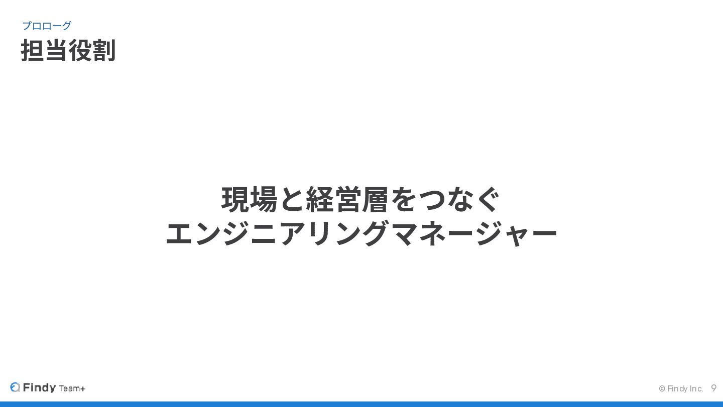 © Findy Inc. 担当役割 プロローグ 9 現場と経営層をつなぐ エンジニアリングマネージャー