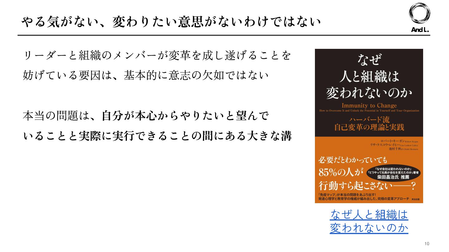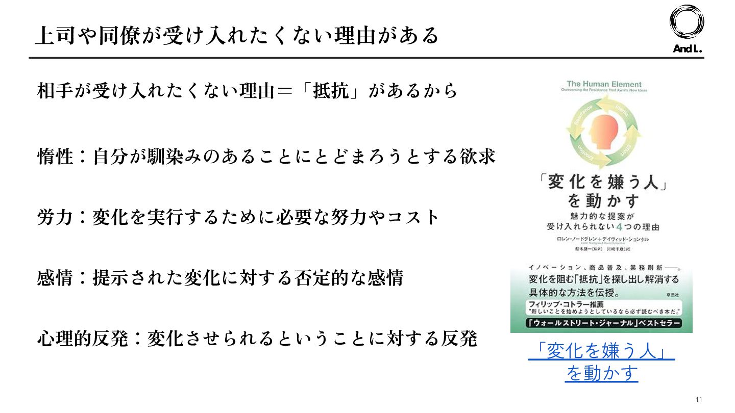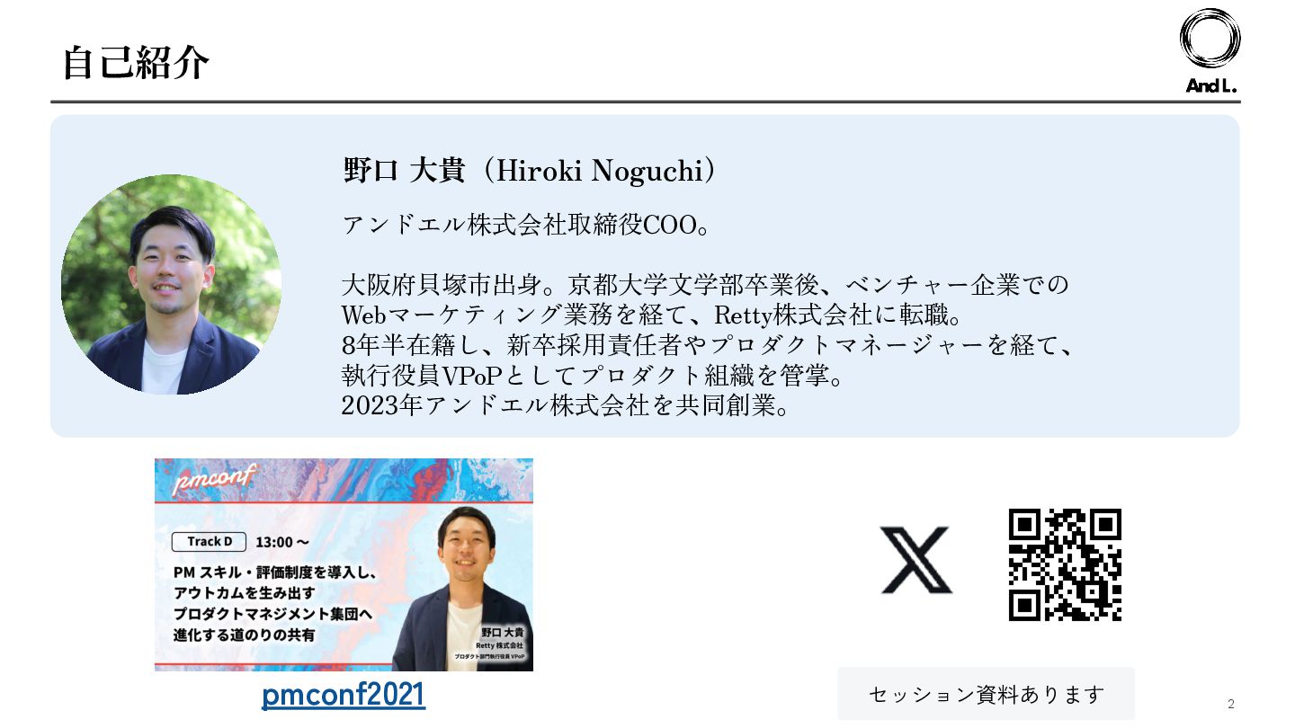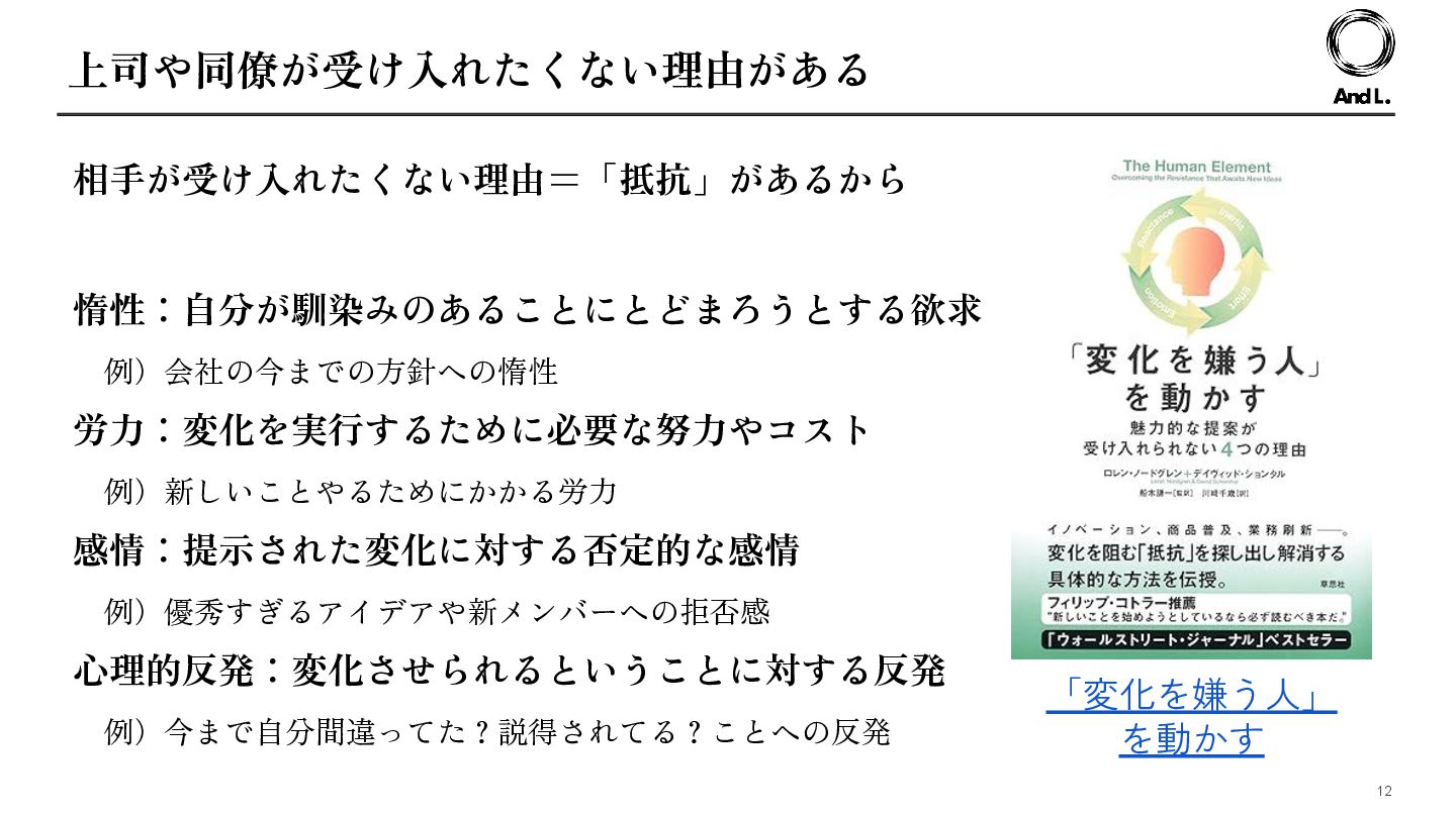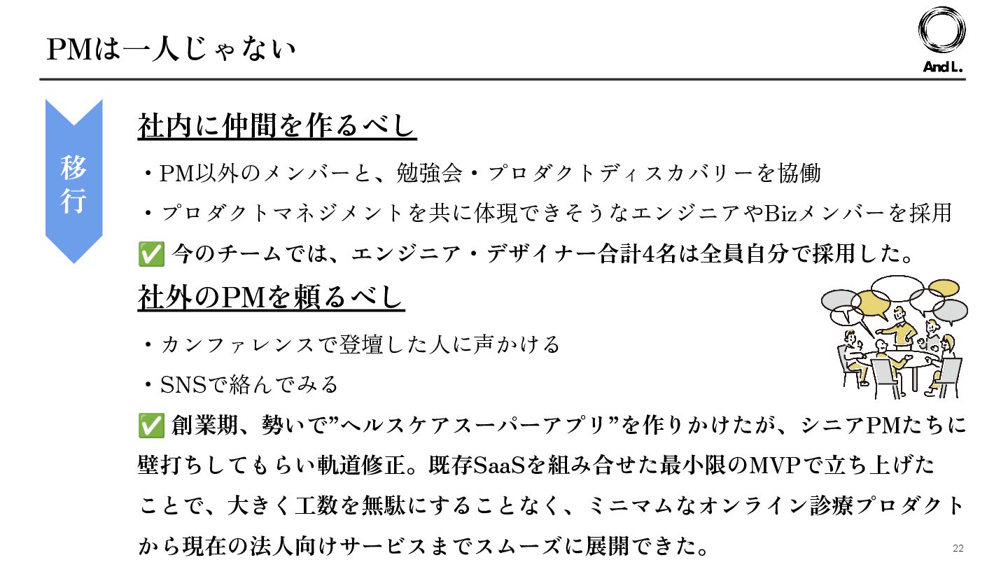 変える ・プロダクトマネジメントの成功指標 を評価や給与グレード等に盛り込む ・ちゃんと上司と合意した上で、 組織の目標・方針として進めて もらう 効果 成果を連続して出せるようになって きたため、大上段を固めても大外しが ない。固めることで習慣化し、文化と して定着を狙う。 実際の事例 ・プロダクトゴールをアウトプット→ アウトカムドリブンに ・誰にどんな価値を提供するか明確に なったので、ミッションをリニューアル 上司を巻き込んで、上司や組織も含めたミッションとして進める ボトムアップ起点に組織の未来を切り拓く三段階ステップ
