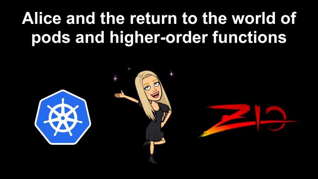 "Alice discovered in the past records that all the pods had disappeared. Alice must return to the world of pods and higher-order functions in order to save her friends. To build a bridge with that world, Alice will rely on the power of ZIO K8s.