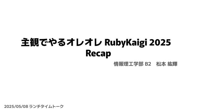 • Automatically generating types by running tests • State of Namespace • TRICK 2025: Episode I • Dissecting and Reconstructing Ruby Syntactic Structures • ZJIT: Building a Next Generation Ruby JIT • Ruby Committers and the World • Road to Go gem • On-the-fly Suggestions of Rewriting Method Deprecations