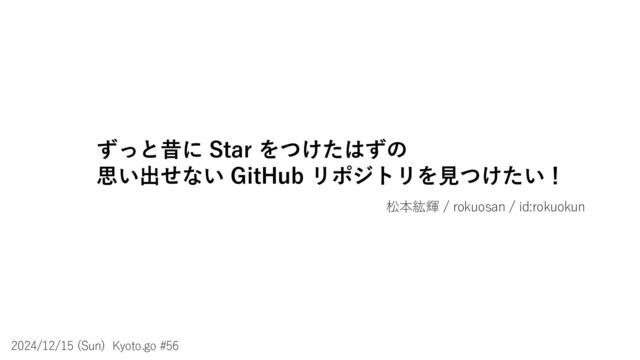 ずっと昔に Star をつけたはずの 思い出せない GitHub リポジトリを見つけたい! 2024/12/15 (Sun) Kyoto.go #56