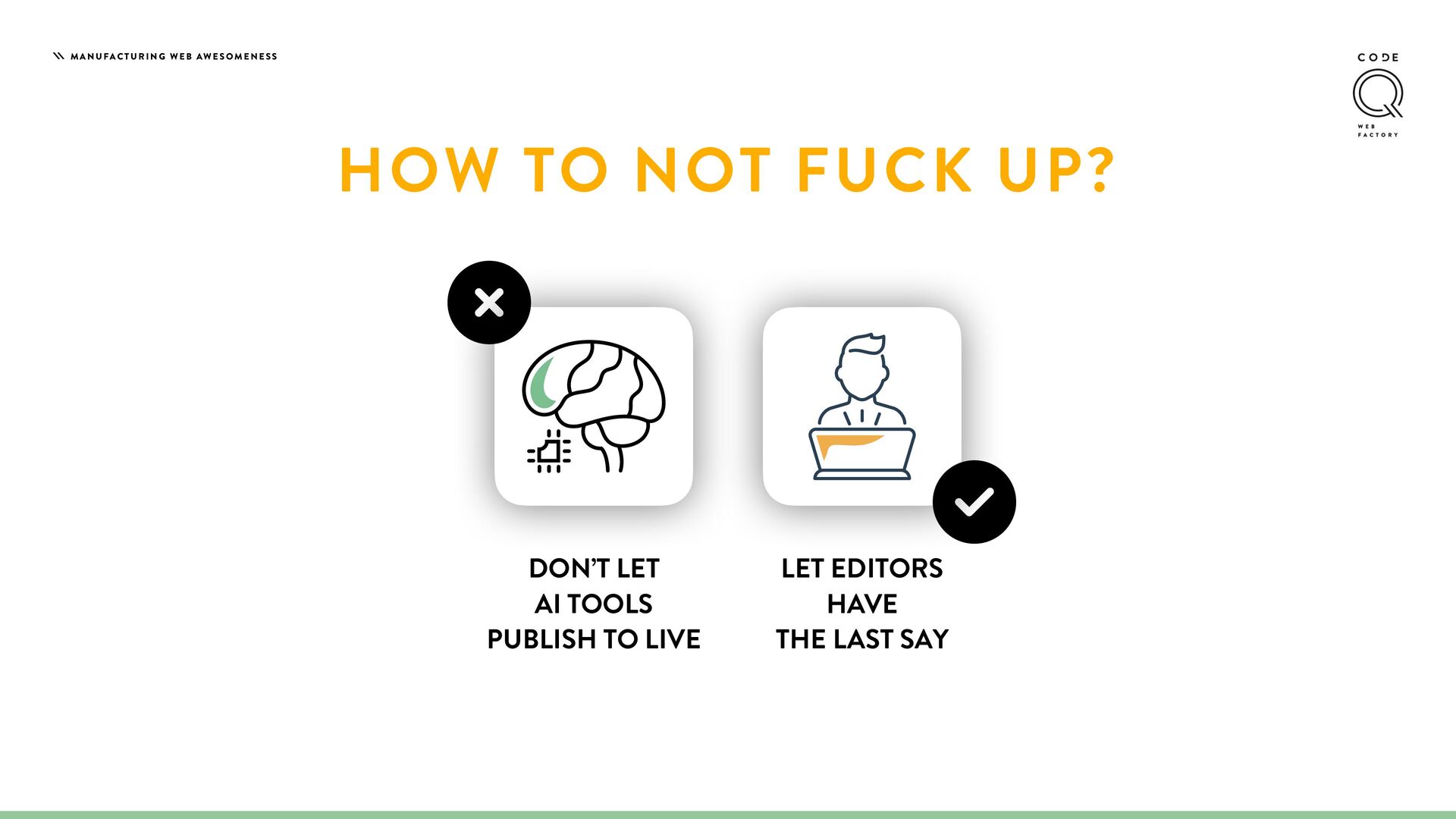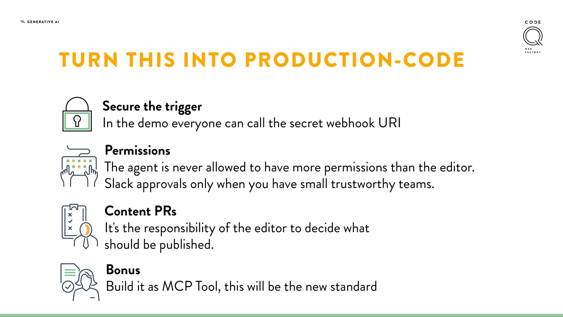 Stop building AI features like Gmail's generic "Help me write" button—where editors lose control and get bland, cookie-cutter content. Instead, discover how to create AI agents that work as true co-pilots, where editors define the brand voice, set the rules, and maintain complete editorial control. We'll show you how to develop a Brand Guard agent with n8n that automatically checks content against your style guidelines, suggests improvements, and lets editors accept or reject changes with one click. Learn how to turn Neos into an AI-native platform that amplifies editor creativity and productivity.