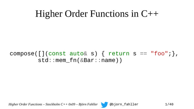 Higher order functions, i.e. functions that accept functions as parameters, or return functions, are not used much by C++ developers, except for the occasional call to standard algorithms. This session will show some simple techniques for writing your own, that will lift the level of abstraction in your programs, making code easier to read while reducing code duplication, and maintaining performance.