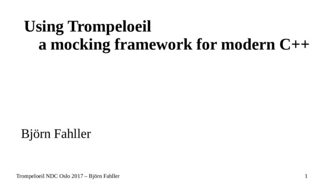 https://github.com/rollbear/trompeloeil [email protected] @bjorn_fahller @rollbear cpplang, swedencpp Using Trompeloeil a mocking framework for modern C++