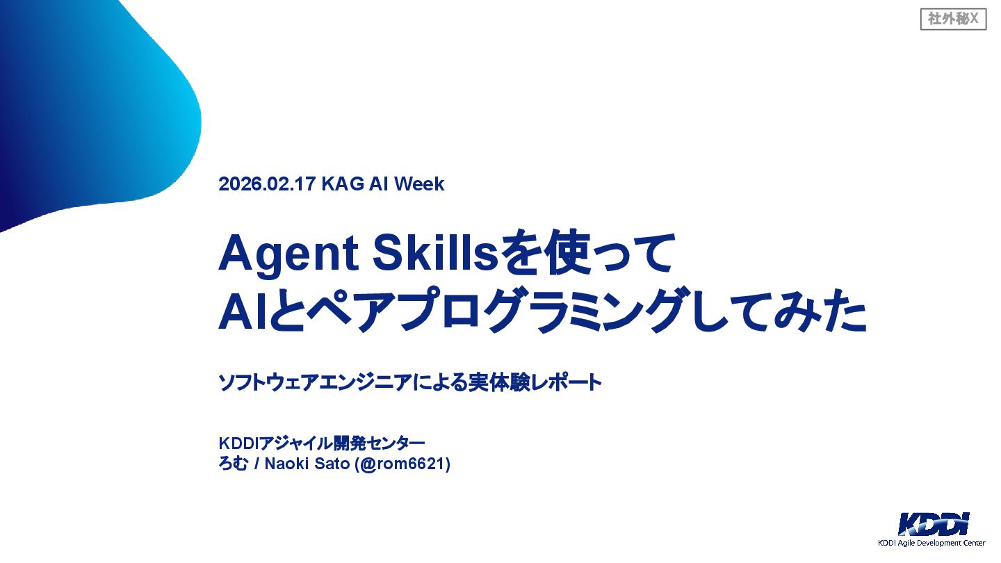 社外秘X 2026.02.17 KAG AI Week Agent Skillsを使って AIとペアプログラミングしてみた ソフトウェアエンジニアによる実体験レポート KDDIアジャイル開発センター