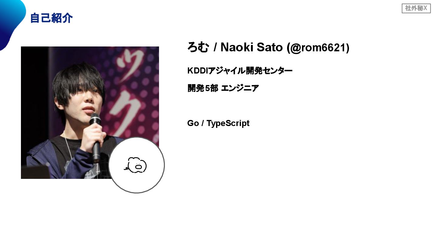 社外秘X 自己紹介 ろむ / Naoki Sato (@rom6621) KDDIアジャイル開発センター 開発5部 エンジニア