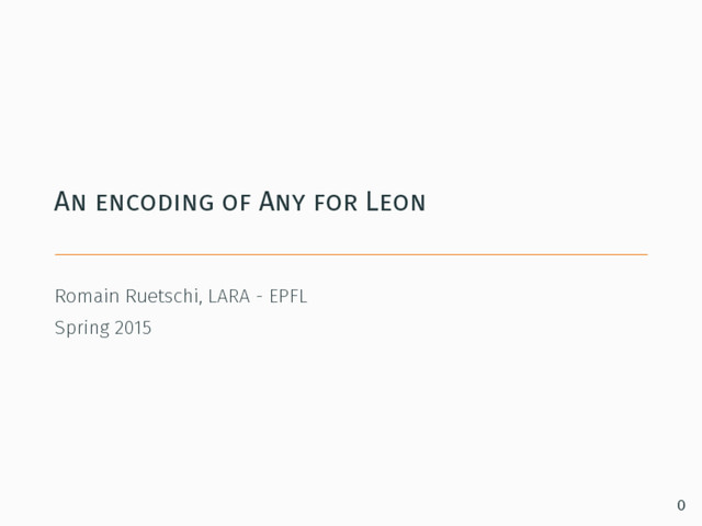 = { require(lst.isInstanceOf[List]) if (lst == Nil()) Nil() else reverse(lst.tail) ++ Cons(lst.head, Nil()) } ensuring (_.size == lst.size) Can’t handle this in translation to Z3: require(lst.isInstanceOf[Any1List]) Without those preconditions, counter-examples are yielded for postconditions. 22