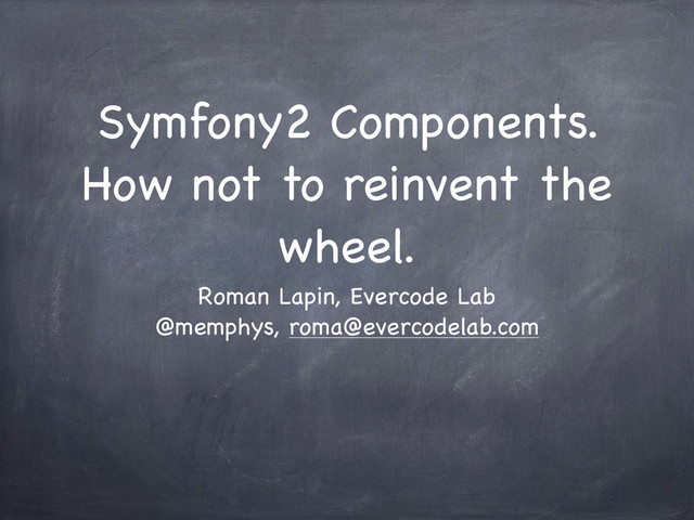 Don't reinvent the wheel, use the existing one, make them better, enjoy and don't waste your time. Symfony2 framework has a remarkable set of standalone decoupled components for various task of web development. Let's see how we can use them for our tasks.