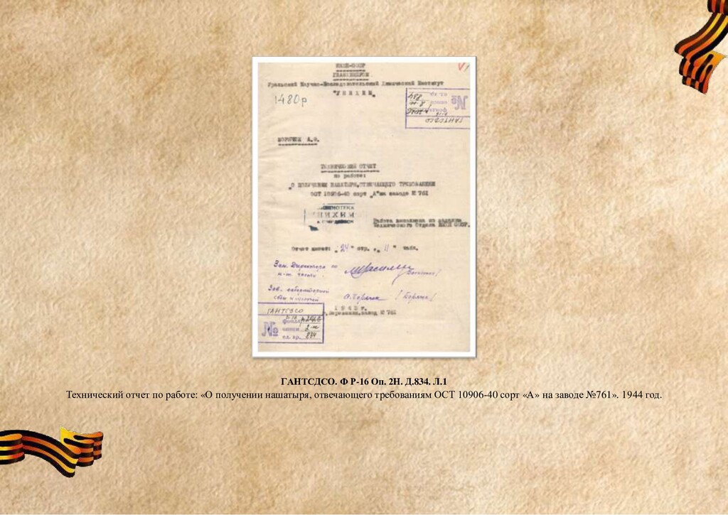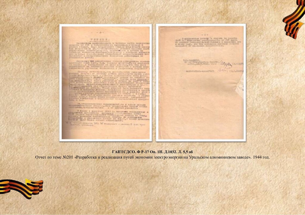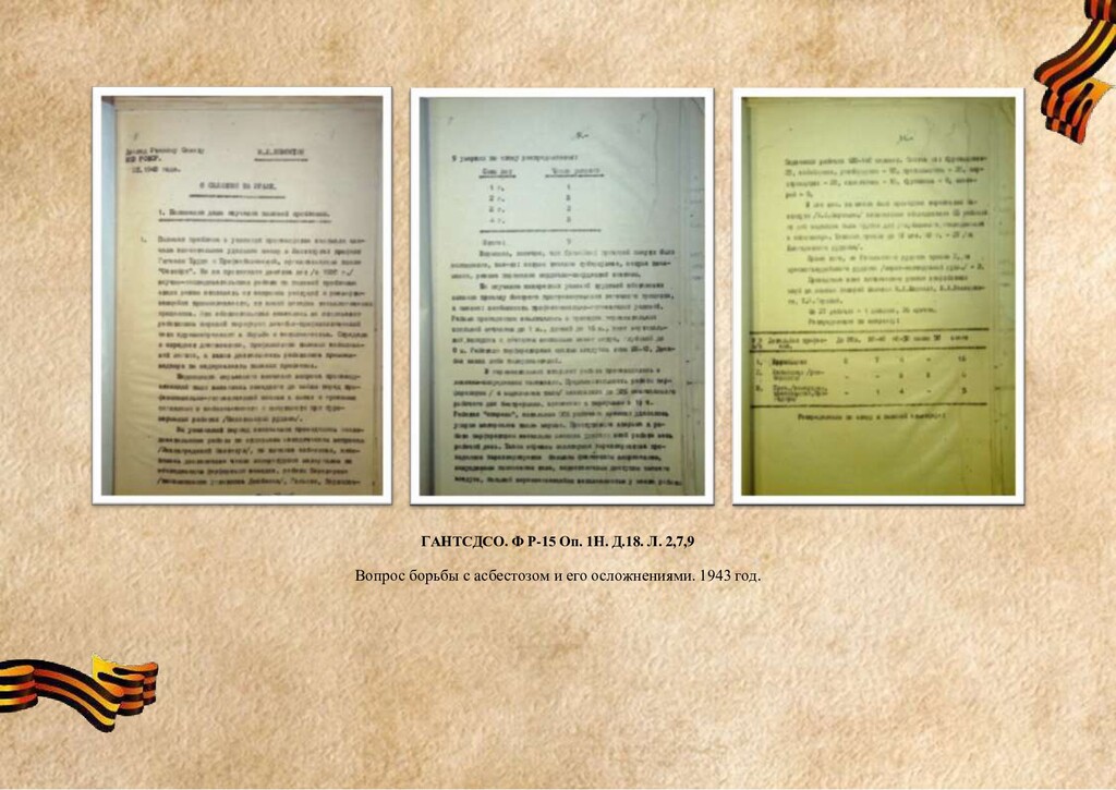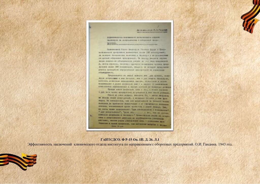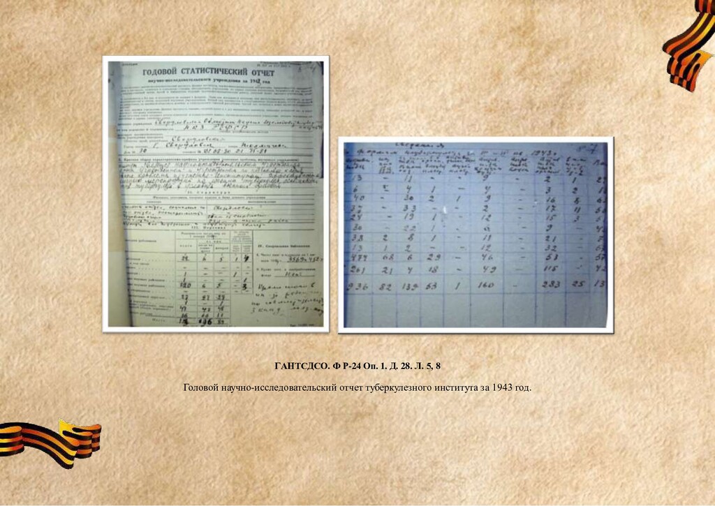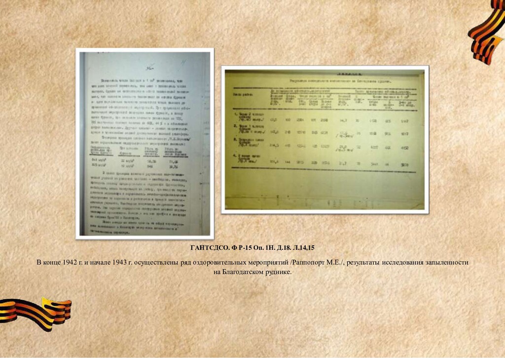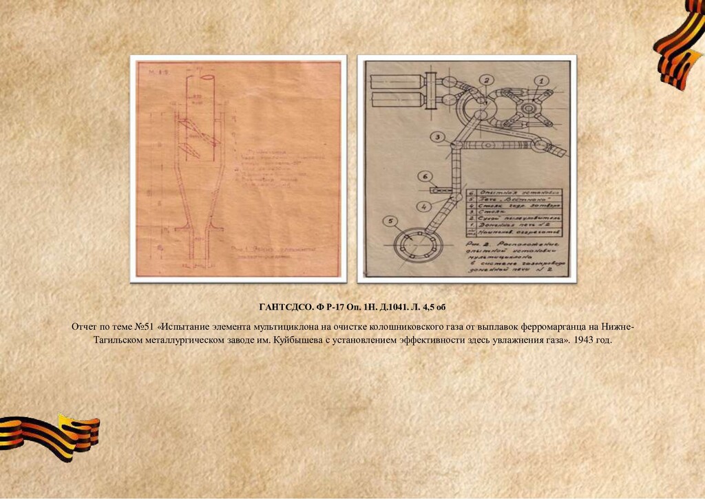 научно-исследовательских институтов Свердловской области легла ответственная задача по быстрой перестройка всей деятельности предприятий и институтов, при этом она проходила в крайне сложных условиях. Достижения предприятий и научно-исследовательских институтов в годы Великой Отечественной войны - славная страница истории, непреходящая ценность для следующих поколений. На фронте и в тылу было необходимо организовать помощь раненым воинам, не допустить возникновения эпидемий, сберечь подрастающее поколение, создать службу охраны здоровья рабочих оборонных предприятий, обеспечить население медицинской помощью. Для решения этих задач предприятия и научно- исследовательские институты, не смотря на все сложности, построили свою работу в условиях военного времени. В Государственном архиве научно-технической и специальной документации хранятся архивные документы периода войны предприятий и уральских научно-исследовательских институтов: Уральское территориальное геологическое управление, Государственный каменноугольный комбинат «Свердловскуголь», Свердловский Научно-исследовательский институт курортологии и физиотерапии, Уральский лесотехнический институт, Свердловский областной научно-исследовательский институт гигиены труда и профзаболеваний, Уральский научно-исследовательский химический институт с опытным заводом, Уральский ордена Трудового Красного знамени политехнический институт имени С.М. Кирова, Свердловский филиал Всесоюзного научного исследовательского института метрологии имени Д.И. Менделеева, Свердловский научно-исследовательский институт травматологии и ортопедии, Всесоюзный научно-исследовательский институт охраны труда, Свердловский научно- исследовательский институт туберкулеза, Свердловский ордена Трудового Красного Знамени научно-исследовательский институт охраны материнства и младенчества, Государственное учреждение «Екатеринбургский научно-исследовательский институт вирусных инфекций». Ученые этих институтов рассматривали вопросы совершенствования заводского оборудования, экономии электроэнергии и других ресурсов, изучали острые проблемы нехватки рабочей силы, применения женского и детского труда, улучшения техники безопасности и улучшения условий труда на предприятиях.