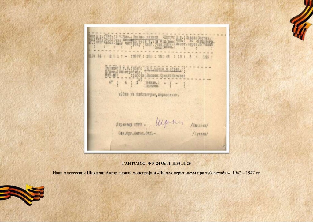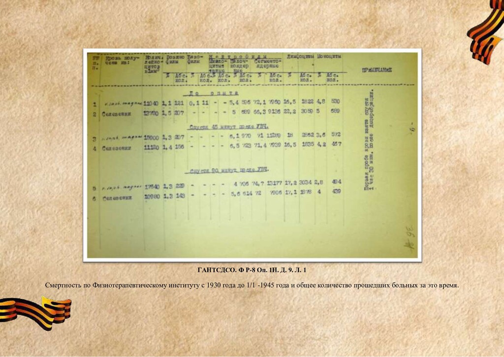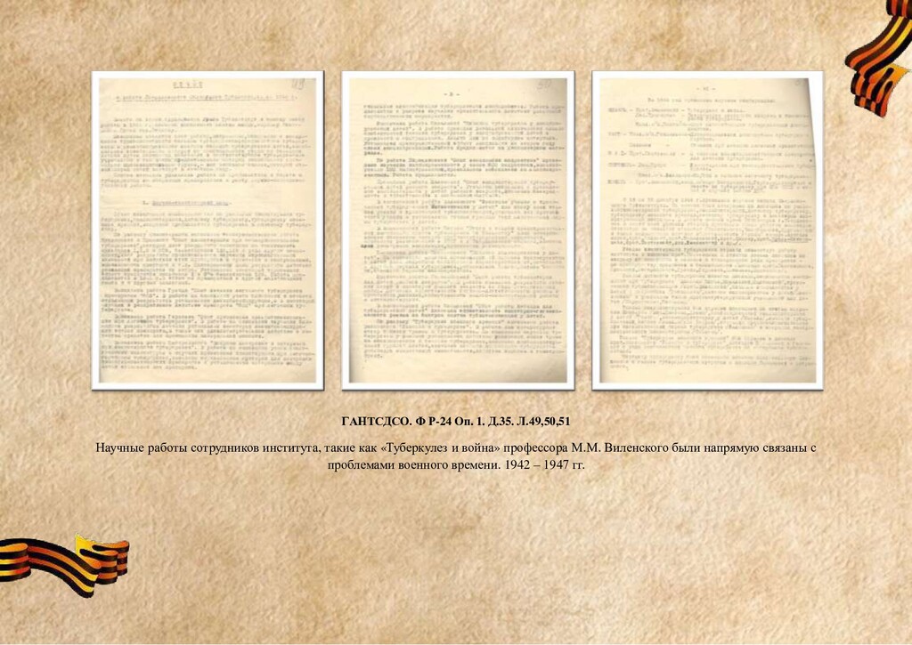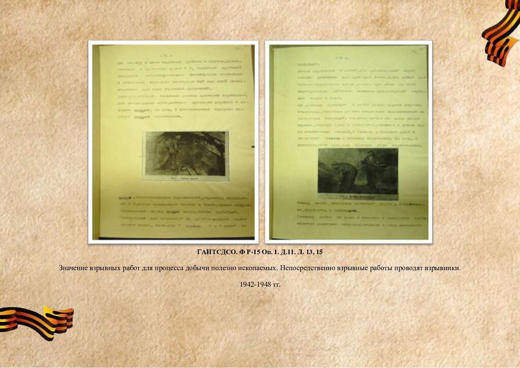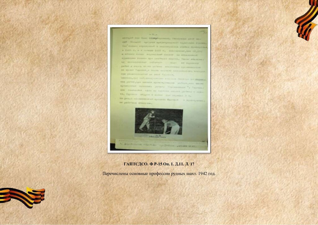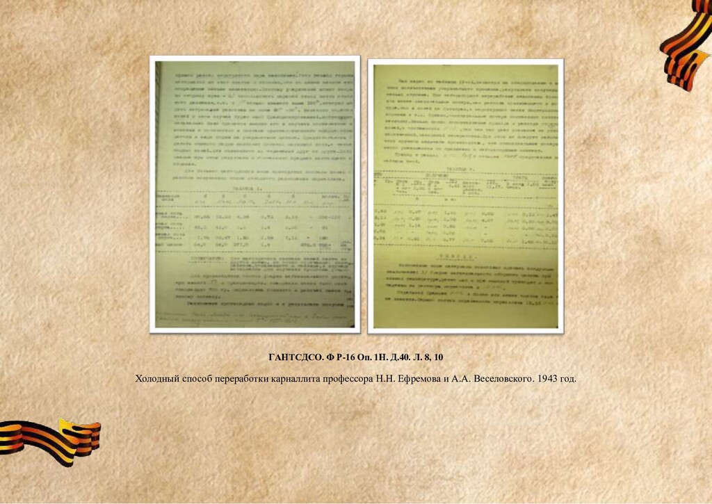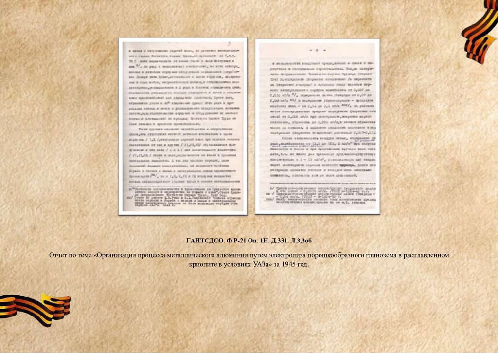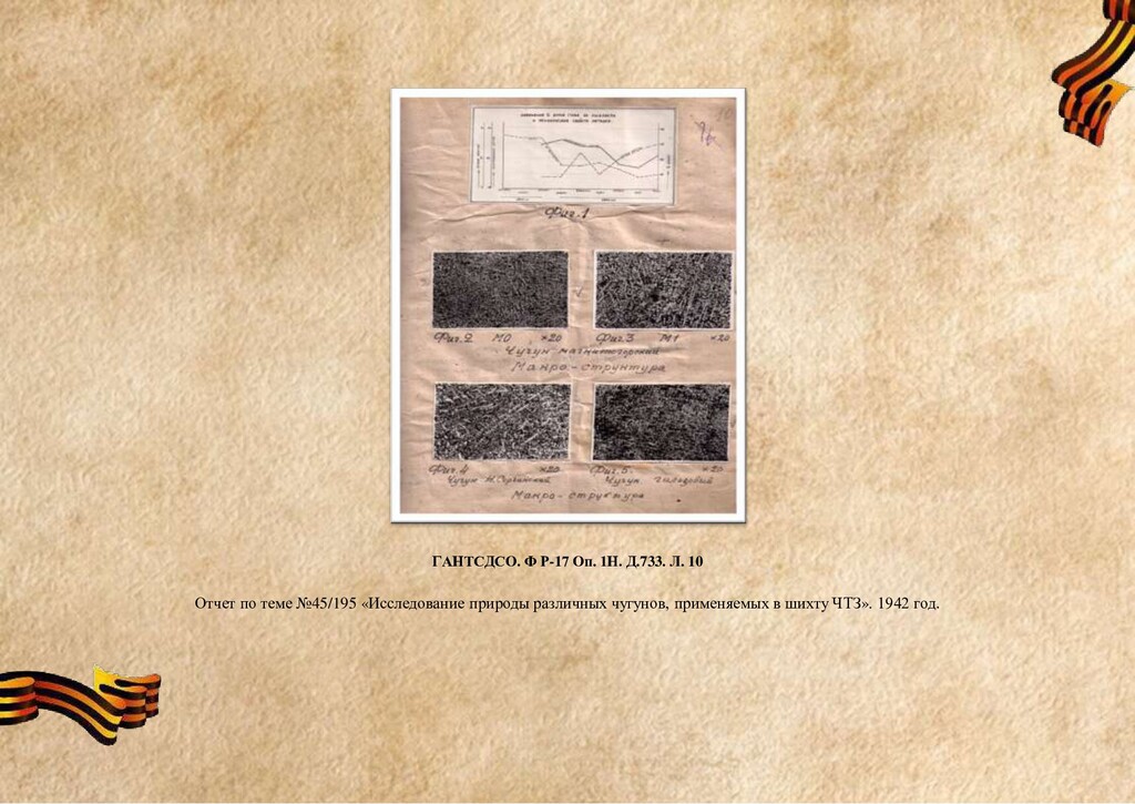 научно-исследовательских институтов Свердловской области легла ответственная задача по быстрой перестройка всей деятельности предприятий и институтов, при этом она проходила в крайне сложных условиях. Достижения предприятий и научно-исследовательских институтов в годы Великой Отечественной войны - славная страница истории, непреходящая ценность для следующих поколений. На фронте и в тылу было необходимо организовать помощь раненым воинам, не допустить возникновения эпидемий, сберечь подрастающее поколение, создать службу охраны здоровья рабочих оборонных предприятий, обеспечить население медицинской помощью. Для решения этих задач предприятия и научно- исследовательские институты, не смотря на все сложности, построили свою работу в условиях военного времени. В Государственном архиве научно-технической и специальной документации хранятся архивные документы периода войны предприятий и уральских научно-исследовательских институтов: Уральское территориальное геологическое управление, Государственный каменноугольный комбинат «Свердловскуголь», Свердловский Научно-исследовательский институт курортологии и физиотерапии, Уральский лесотехнический институт, Свердловский областной научно-исследовательский институт гигиены труда и профзаболеваний, Уральский научно-исследовательский химический институт с опытным заводом, Уральский ордена Трудового Красного знамени политехнический институт имени С.М. Кирова, Свердловский филиал Всесоюзного научного исследовательского института метрологии имени Д.И. Менделеева, Свердловский научно-исследовательский институт травматологии и ортопедии, Всесоюзный научно-исследовательский институт охраны труда, Свердловский научно- исследовательский институт туберкулеза, Свердловский ордена Трудового Красного Знамени научно-исследовательский институт охраны материнства и младенчества, Государственное учреждение «Екатеринбургский научно-исследовательский институт вирусных инфекций». Ученые этих институтов рассматривали вопросы совершенствования заводского оборудования, экономии электроэнергии и других ресурсов, изучали острые проблемы нехватки рабочей силы, применения женского и детского труда, улучшения техники безопасности и улучшения условий труда на предприятиях.