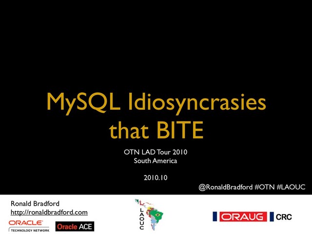 While MySQL is a popular and widely used database product, there are some default features and settings which can be foreign in comparison with other commercial RDBMS products such as Oracle. In this discussion, Ronald Bradford will discuss some of the MySQL defaults that are not what you may expect. These include understanding the concept of storage engines, and the default non-transactional state, how silent data truncations occur which affect your data, ideal practices for date management, and the MySQL transaction isolation options. These are all critical to clearly understand and implement correctly for data integrity and consistency. He will cover in-depth topics including SQL_MODE and the recommended best practices for default settings, the ideal user permissions and privileges including not what to do, and also the best practices for character sets and collations to ensure your UTF8 is stored and retrieved correctly.