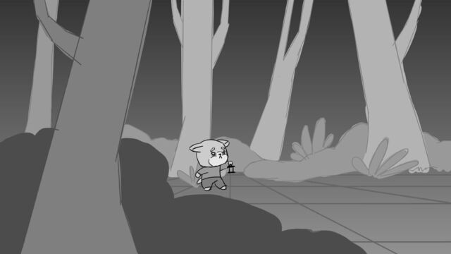 A Shiba is traveling through the woods at night but runs into a terrifying creature hiding in the shadows.