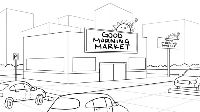 Scenes boarded by me that introduce the disaster of one clumsy worker at the Good Morning Market.