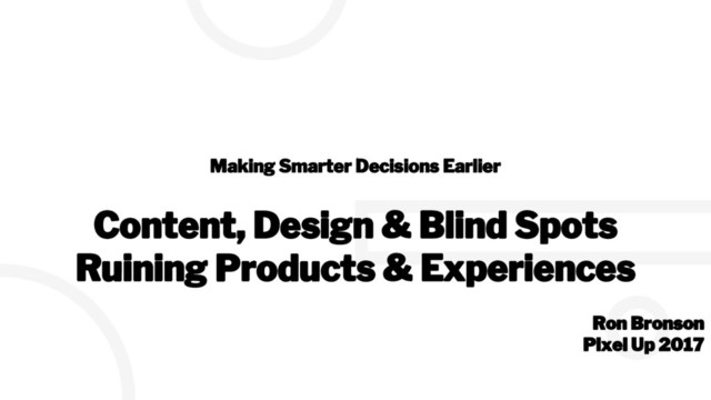 Making Smarter Decisions Earlier Content, Design & Blind Spots Ruining