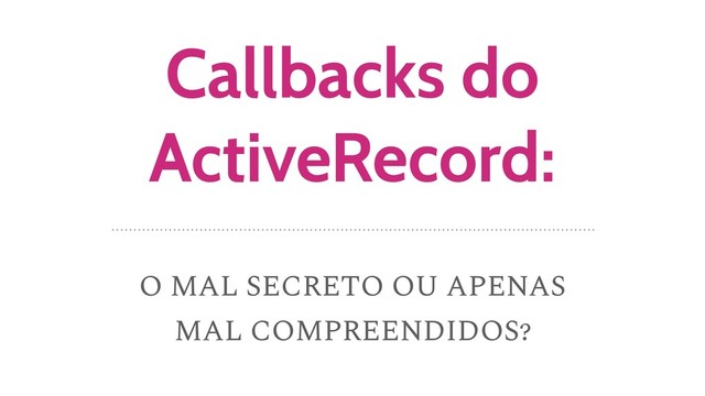 Callbacks do ActiveRecord são um dos recursos mais controversos da comunidade Ruby/Rails e são muitas vezes associados a sinônimo de manutenção custosa. Afinal, é possível reduzir sofrimento e fricção sem abrir mão dessa ~ferramenta afiada~? Nessa talk, eu pretendo explorar o que faz esse tema ser tão polêmico, alguns cenários em que callbacks podem ser um recurso valoroso e, principalmente: o que eles tem a nos dizer sobre design de software.