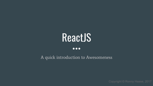 or needs to store data you put them into its State • Immutable, plain Objects • Pass on down as props • Eventually Props can be the source (do not assign by reference!) this.state = this.props.whatever this.state = { ...this.props.whatever }