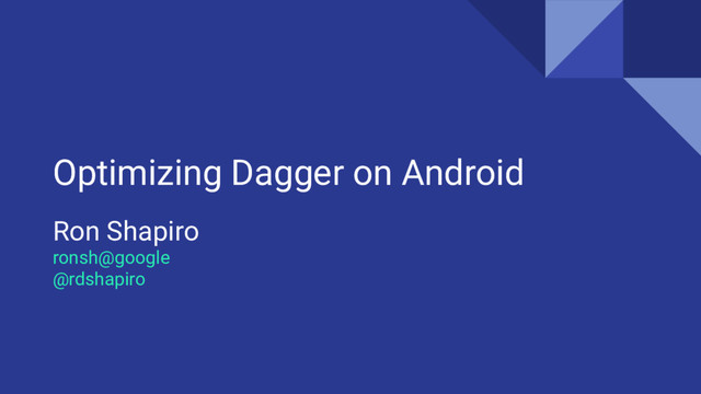 We'll discuss recent developments in Dagger for Android, both in terms of new APIs in dagger.android and optimizations in generated code. We'll then discuss how to not encounter common pitfalls that decrease runtime performance.