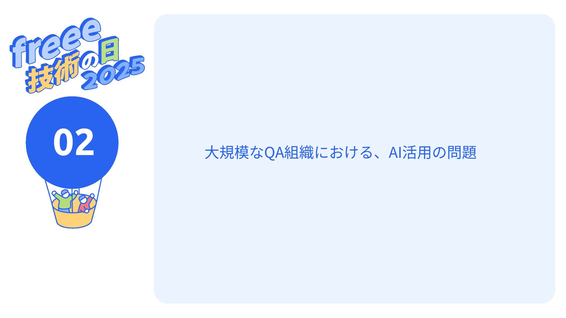 02 ⼤規模なQA組織における、AI活⽤の問題