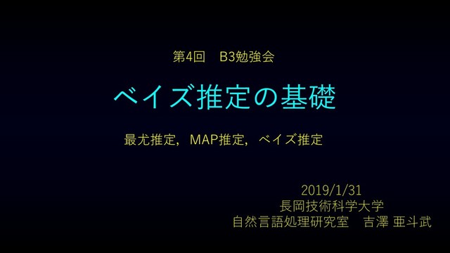 (1) Maximum likelihood estimation (2) MAP estimation (3) Bayesian estimation (4) Exponential distribution family and conjugate prior distribution