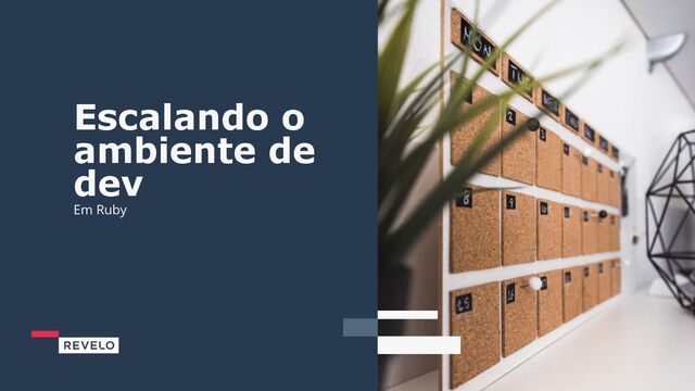 de propagar processos/scripts entre os times. Geradores de código, templates, scripts de setup tem um lugar para morar agora. Infrastructure as Code (IaC) Agora com o ambiente documentado e replicável, podemos seguir para o próximo nível de complexidade e colocarmos infraestrutura como código. Podemos agora com facilidade migrar para kubernetes ou qualquer outra ferramenta que tenhamos interesse. Nova realidade Ambiente pronto Ambiente pronto para uso, permitindo que o foco vá para o que realmente importa que é o produto. Mas ao mesmo tempo permite que possamos evoluir a infra e facilita mudanças.