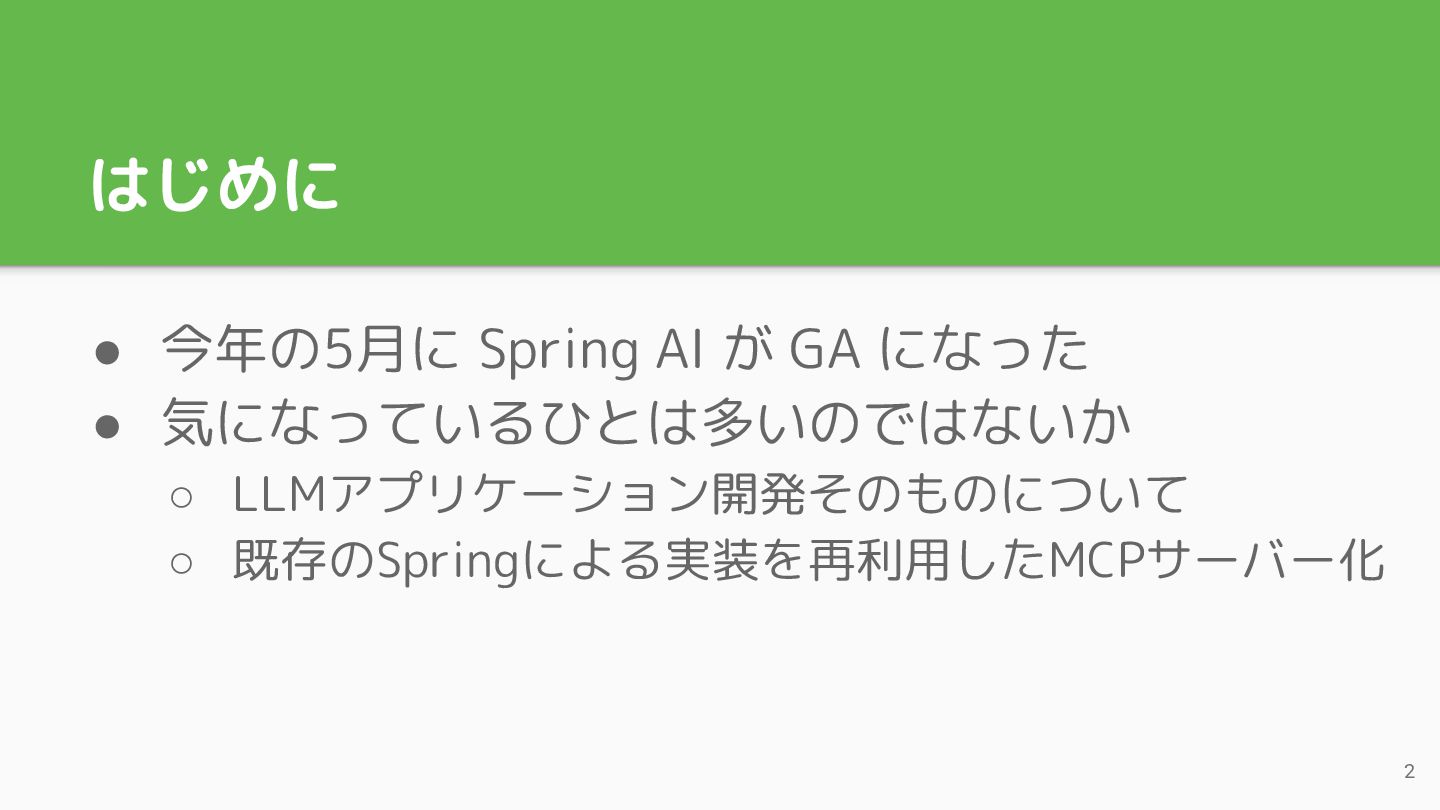 Springユーザーとして、既存のSpringによる実装を再利用したMCPサーバー化や、JavaでのLLMアプリケーション開発について、気になっている人は多いのではないでしょうか。