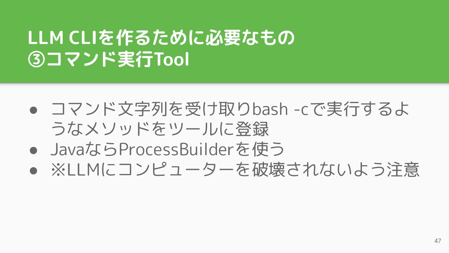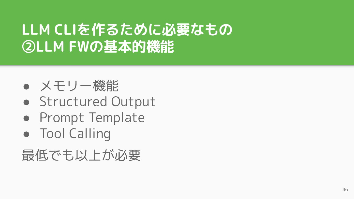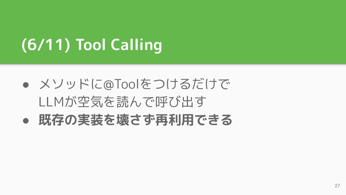 持ってないLLMにもある程度有効 ◦ モデルが提供するStructured Outputも使える • 100%のJSON出力を保証するものではない ◦ プロンプトで指定しているだけなので > The StructuredOutputConverter is a best effort to convert the model output into a structured output. https://docs.spring.io/spring-ai/reference/api/structured-output-converter.html