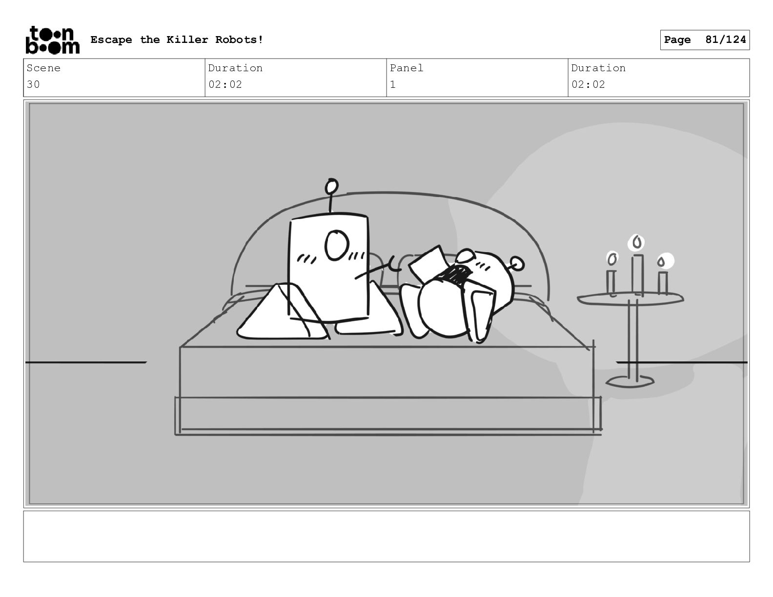 Scene 2 Duration 02:06 Panel 2 Duration 01:03 Escape the