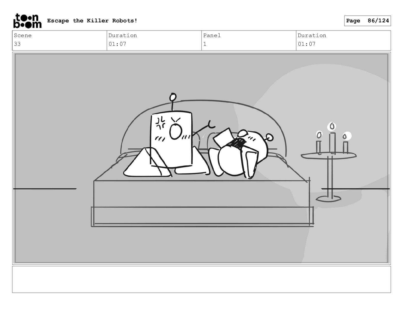 Scene 53 Duration 02:00 Panel 2 Duration 01:00 Escape the