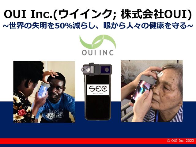 75,000,000 JPY AMED 医⼯連携イノベーション推進事業 20/10-22/3 ⽇本 30,000,000 JPY IFC TechEmerge Health East Africa 21/1-21/12 ケニア 15,000 USD JICA 全世界医療 ICT による新型コロナ ウイ ルス対策⽀援に 係る情報収 集・確認調査 21/10-21/12 ケニア 5,000,000 JPY IDB lab Silver Economy 21/10- ブラジル 700,000 USD AMED 医療機器開発推進研究事業 22/4-26/3 ⽇本 128,700,000 JPY 横浜市 スタートアップ社会実装推進事業 22/12-23/3 神奈川県横浜市 1,200,000 JPY つくば市 令和4年度未来共創プロジェクト 22/7-23/3 茨城県つくば市 2,000,000 JPY 厚⽣労働省 WHO事前認証及び推奨の取得並 びに途上国向けWHO推奨機器要 覧掲載推進事業 23/4-24/3 ⽇本、ケニア 5,000,000 JPY © OUI Inc. 2023 This document is solely for discussion purposes and cannot be held against OUI Inc. in any event 国内外での、公的助成⾦・研究費の獲得